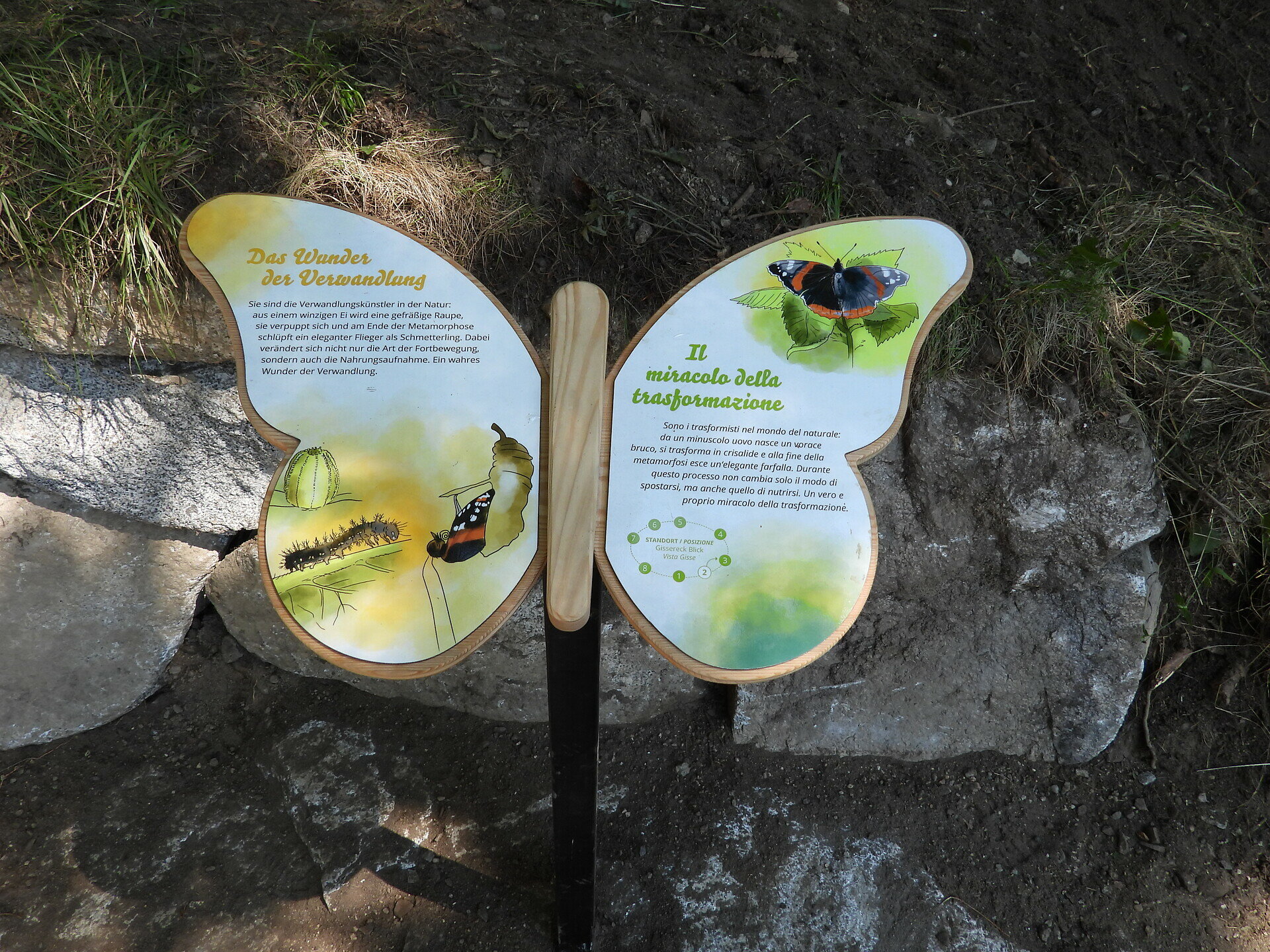Die verstreuten Bauernhöfe auf den sonnseitigen Hängen zwischen St. Sigmund und Terenten pflegen die Landschaft mit großer Sorgfalt. Blühende Wiesen, duftende Wälder und natürliche Vegetationsflächen bilden für Schmetterlinge einen optimalen Lebensraum. Entlang des Weges kann man auf Schautafeln viele interessante Informationen über die Schmetterlinge erfahren und sich auf originellen Sitzbänken ausruhen.