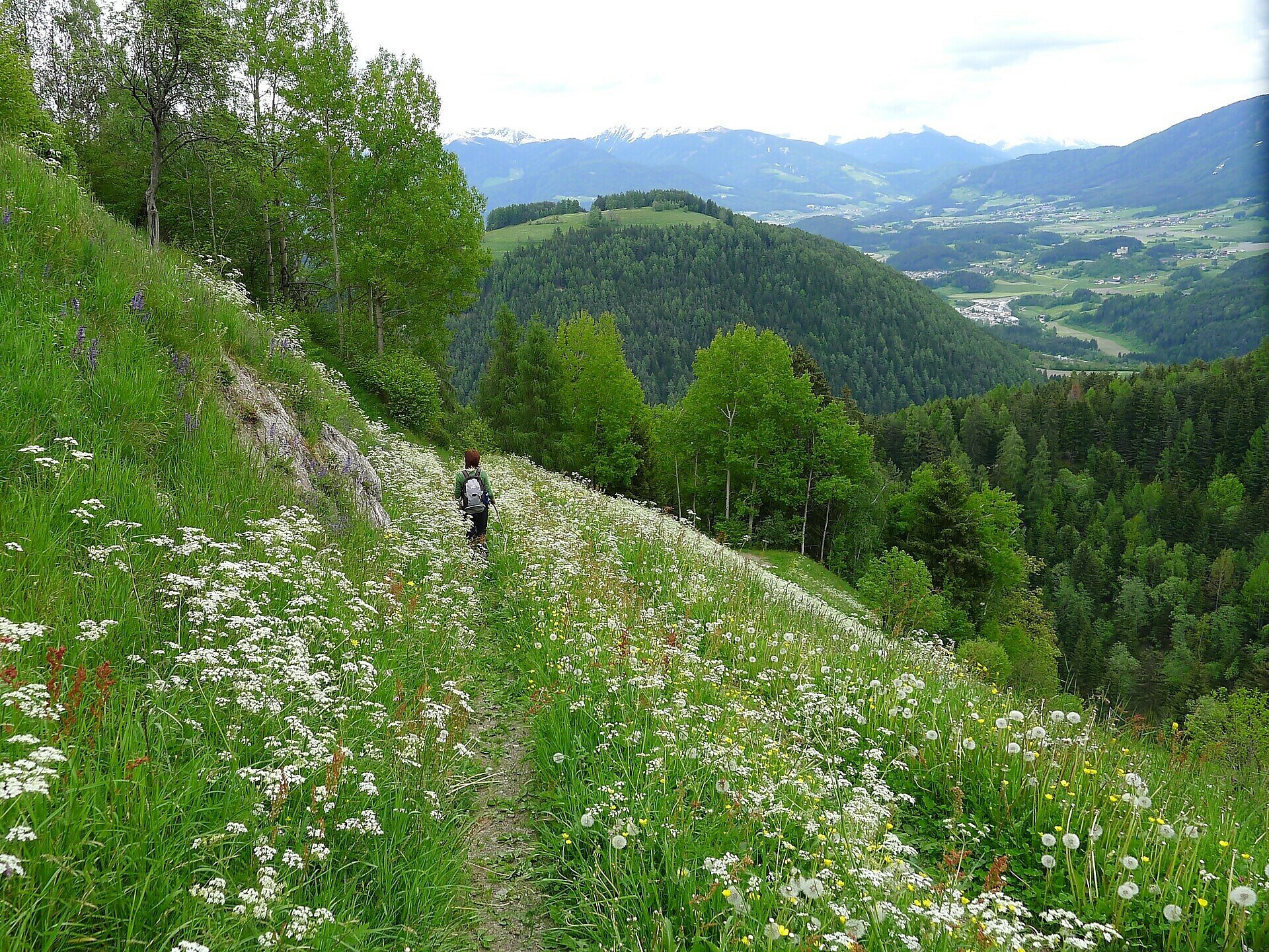 In kurzer Zugfahrt erreichen wir die schöne Marktgemeinde St. Lorenzen (810m/Ausgangspunkt). Auf zum Teil nicht markierten unbekannten Pfaden, durch Wiesen und Wälder wandernd, begleitet von schönen Veduten auf die Brunecker Weitung und der Rieserferner Gruppe, überschreiten wir den Onsberg (939 m) und erreichen den Ausluger Hof, inklusive Besichtigung des urigen Bauernhofes, im idyllischen Örtchen St. Martin gelegen. Nach unserem Aufenthalt passieren wir das von der markanten Michelsburg, Ansitzen und Bauernhöfen geprägte Dorf und erreichen das Westende von St. Lorenzen. Im Antlitz der imposanten Sonnenburg wandern wir bis zum schönen gleichnamigen Ortsteil (830m). Es erwartet uns eine spannende Traverse unter den Sonnenburger Kopf (937) durch den „Haselnusstunnel“. Mit prächtiger Aussicht über die Talweitung von St. Lorenzen erreichen wir das letzte Teilstück der Wanderung. Dieser führt uns entlang der rauschenden Rienz zurück zum Ausgangspunkt.