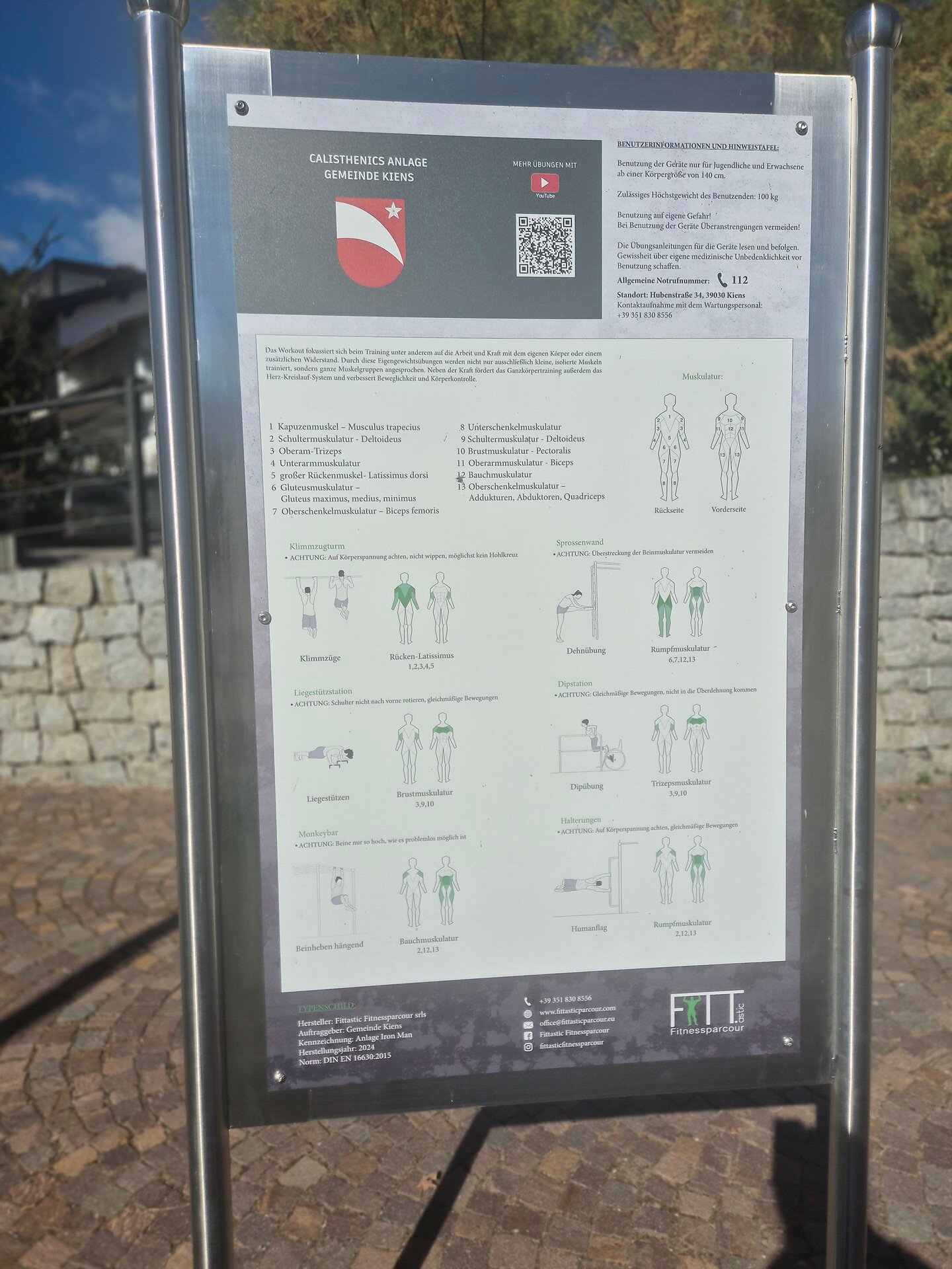 Der neue Calisthenics Anlage in Kiens ist ein funktioneller Trainingsbereich, der sich beim Vereinshaus befindet. Er wurde konzipiert, um Sport- und Fitnessbegeisterten ein Training im Freien zu ermöglichen. Die Anlage steht allen offen und ist kostenlos, so dass Functional Training für jeden erschwinglich ist.