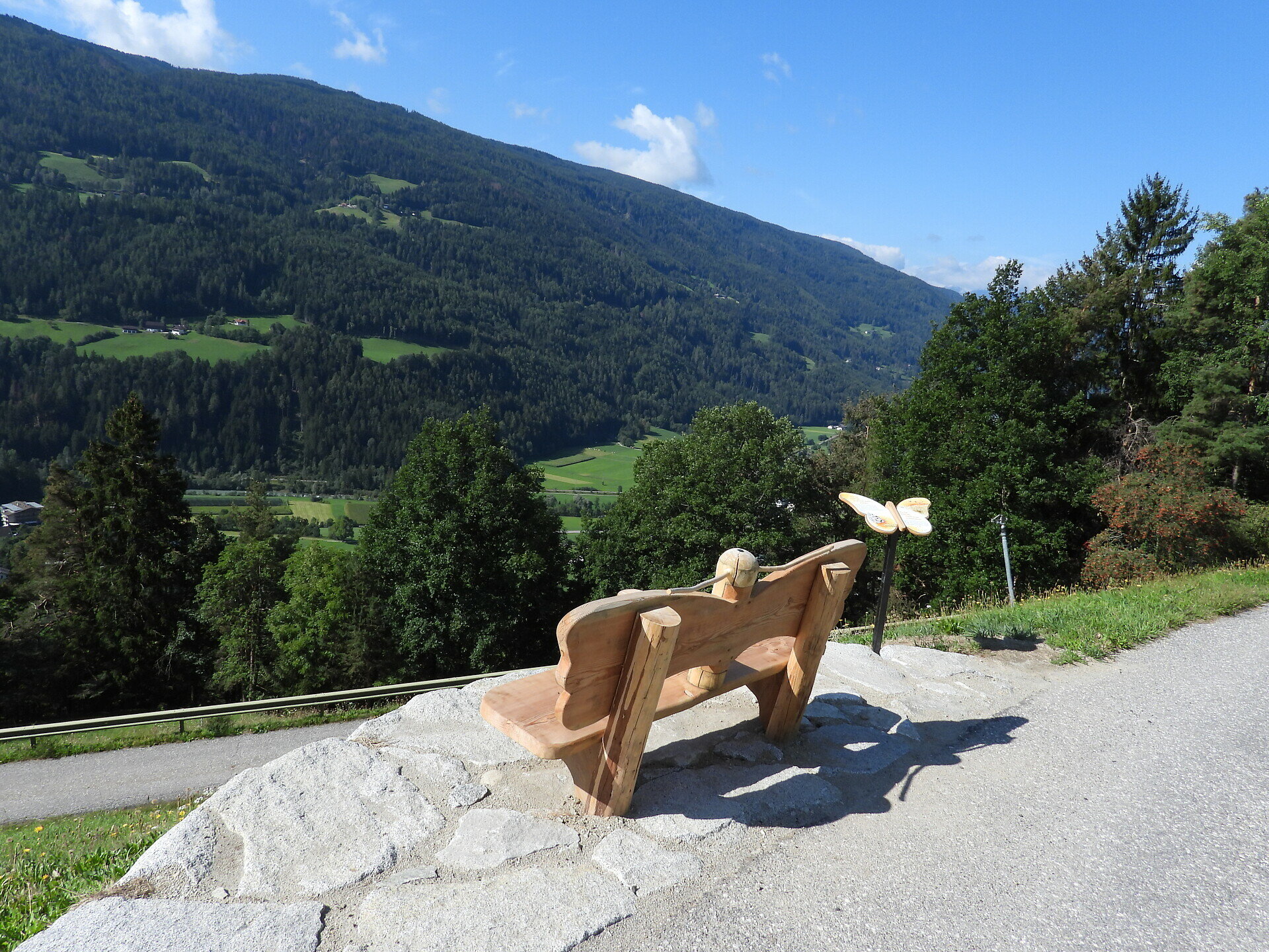 Scattered throughout the sunny hillside between San Sigismondo/St. Sigmund and Terento/Terenten, the local farms have long shaped and fostered the landscape with great care. Colorful meadows in full bloom, scented forests, and plenty of pristine nature – the perfect habitat for butterflies of all kinds and sizes. Along the path, you can learn a lot of interesting information about the butterflies on display boards and rest on original benches.