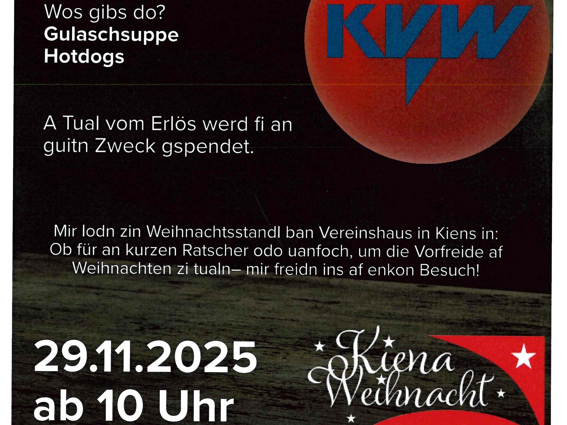 The KVW local groups of the municipality of Kiens cordially invites you to the Kiens Christmas Market.