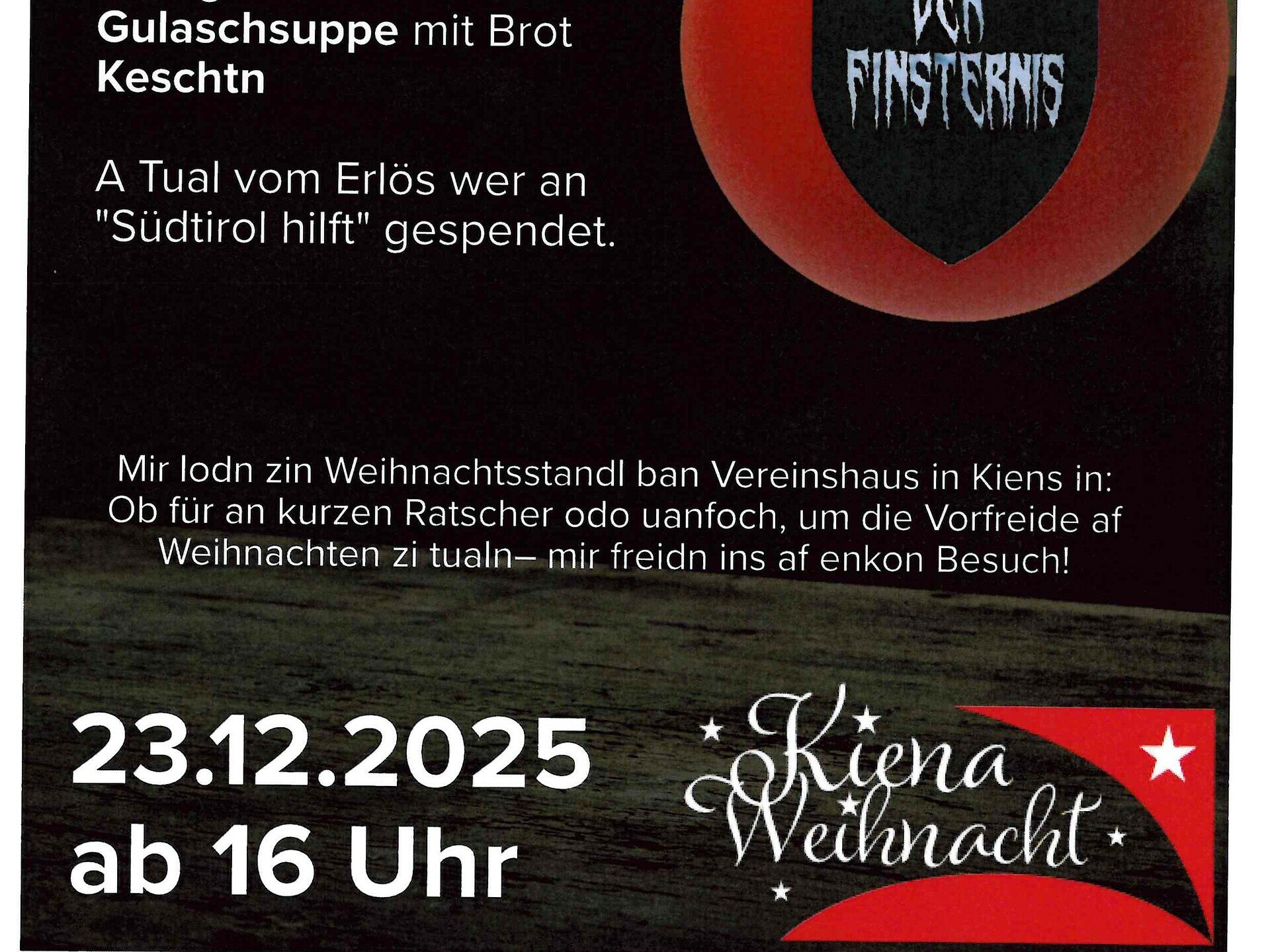 Il 23.12. 2025 a partire dalle 16:00 presso la Casa delle Associazioni di Chienes.
