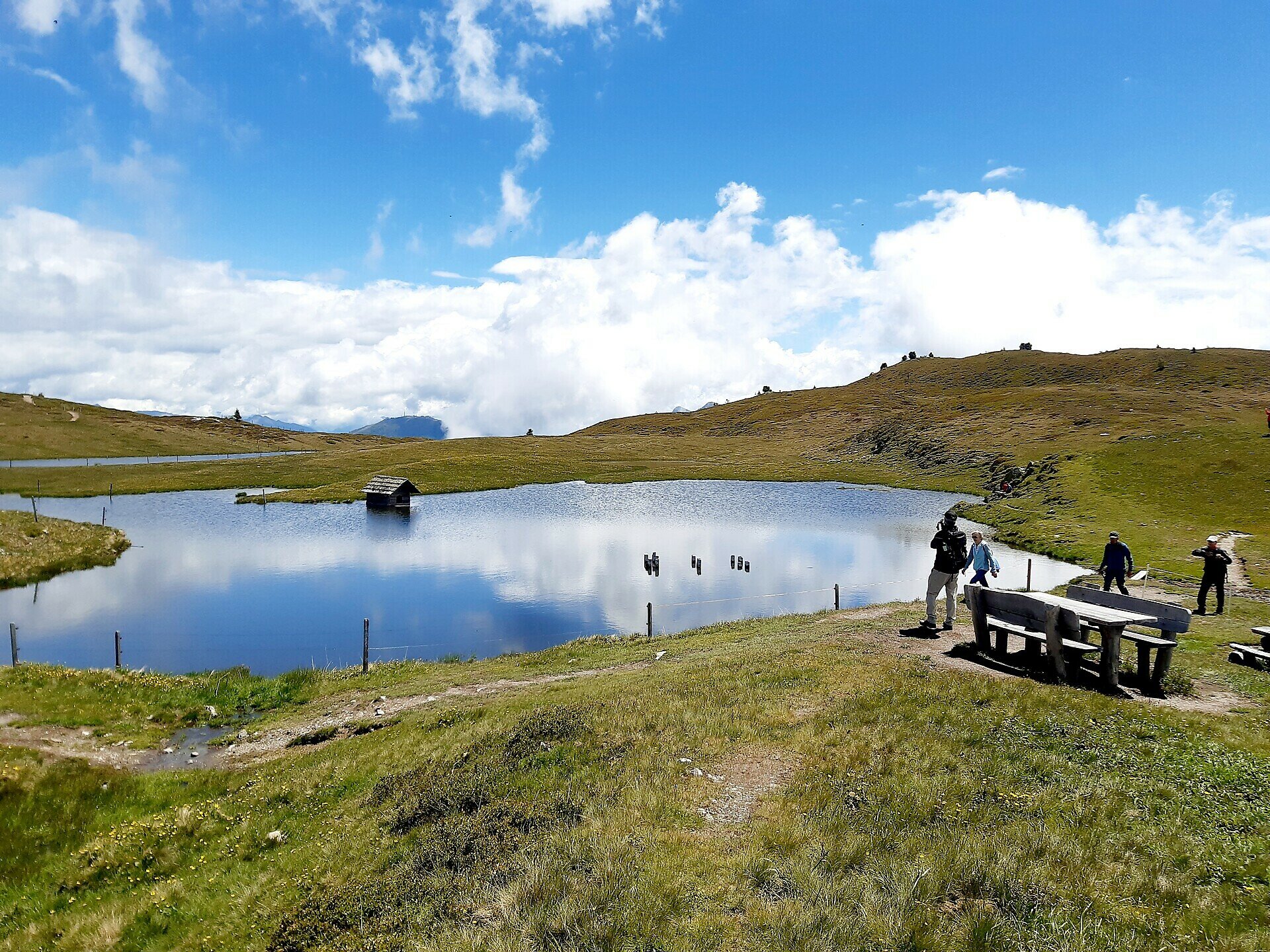 Dopo un breve tragitto in auto, raggiungiamo il tranquillo villaggio ladino montano di Rina. Parcheggio gratuito Campo Sportivo/Punto di partenza (1.512m). Dapprima si sale dolcemente, con sorprendenti viste sulle Dolomiti , all'allettante Malga Munt da Rina/possibilità ristoro (1.947m). Presto raggiungeremo il confine forestale, dietro il quale si estendono ampi prati di montagna dolcemente ondulati. Salendo poi per una cresta erbosa, raggiungeremo la croce di vetta del Col da Lech (2.175m). Da qui, su un lieve sali e scendi si arriva presto ai deliziosi laghetti Glittner/Di Rina. Il percorso di ritorno (tralasciando il Col da Lech) si svolgerà in parte come quello dell’andata.