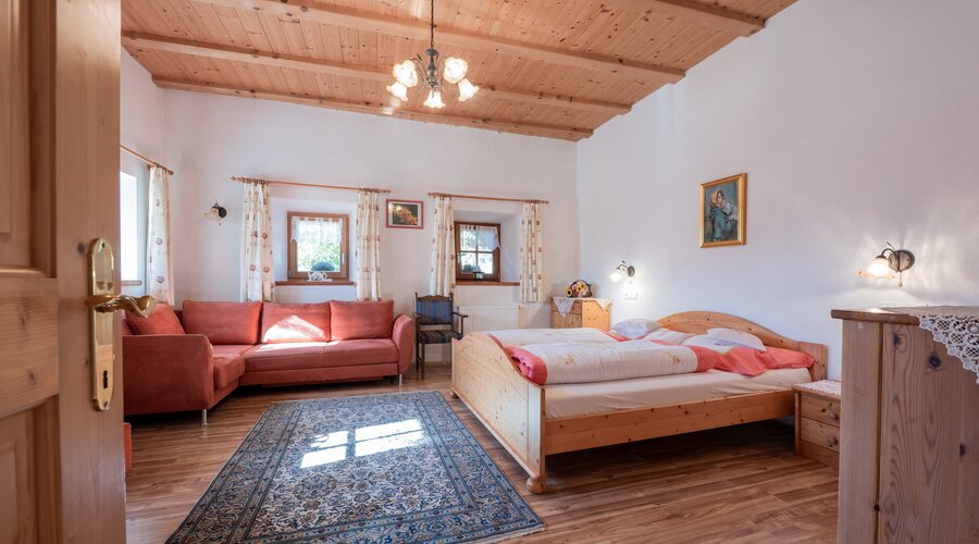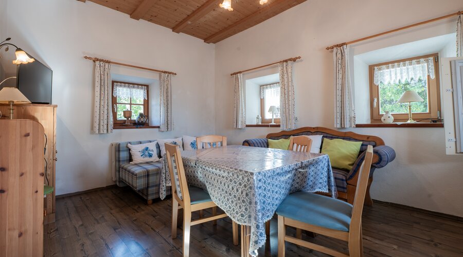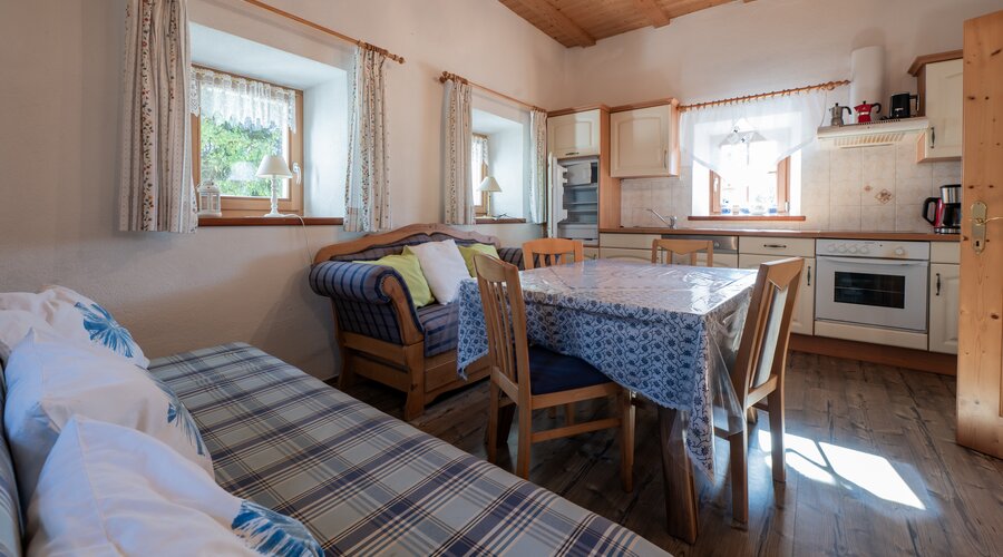 Il nostro accogliente appartamento „Backhäusl“ è arredato con amore in legno naturale, combinando il fascino rustico con il comfort moderno. Un tempo qui si trovava il vecchio forno della fattoria, da cui il nome „Backhäusl“.
