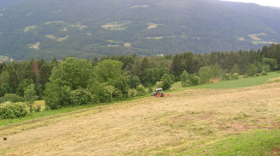 Oltre all’allevamento degli animali, i lavori nei campi giocano un ruolo centrale nella nostra fattoria. Nei terreni circostanti vengono coltivate diverse piante, come cereali, mais e foraggi per gli animali. In primavera i campi vengono preparati e seminati; in estate le piante crescono rigogliose; in autunno si raccoglie il raccolto.