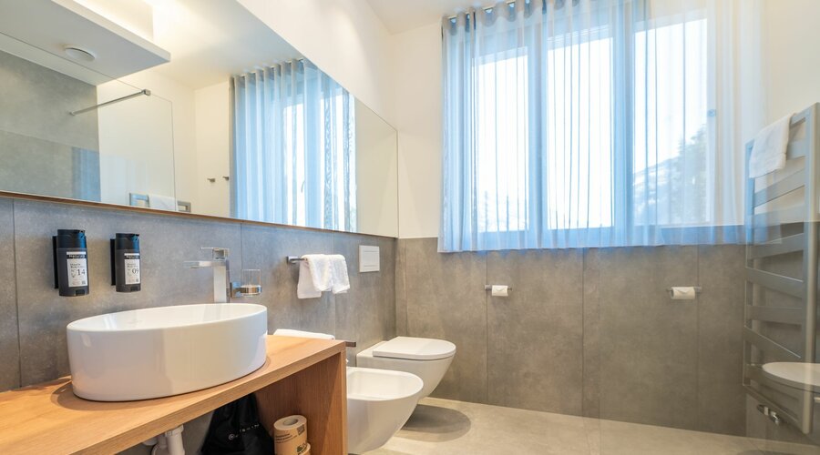 Ambienti ampi e luminosi, arredi realizzati su misura, camere eleganti e bagni in moderno stile spa garantiscono privacy e benessere ai massimi livelli – per ospiti che apprezzano estetica e qualità.