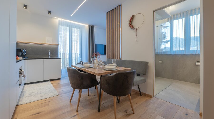 Cinque appartamenti esclusivi uniscono design moderno e atmosfera di montagna. Materiali naturali, linee essenziali e dettagli curati creano un ambiente raffinato ma accogliente – perfetto per fughe romantiche, momenti speciali in coppia o rilassanti vacanze in famiglia.