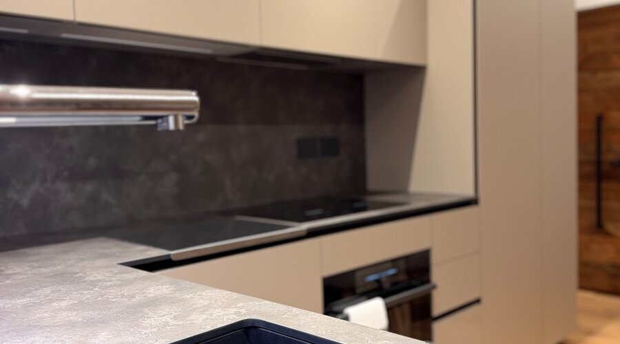 La cucina si integra con eleganza nell’ambiente living – funzionale, raffinata, studiata nei dettagli.