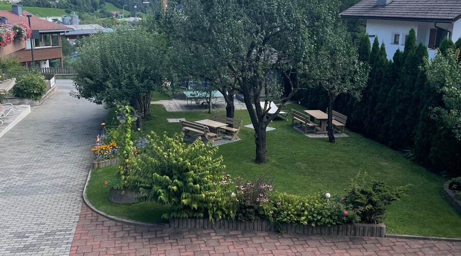 Nach einem erfüllten Sommertag in den Bergen erwartet Sie der Garten als Ort der Ruhe. Lehnen Sie sich auf einer Sonnenliege zurück, verlieren Sie sich in einem guten Buch oder lauschen Sie einfach der sanften Abendstimmung.