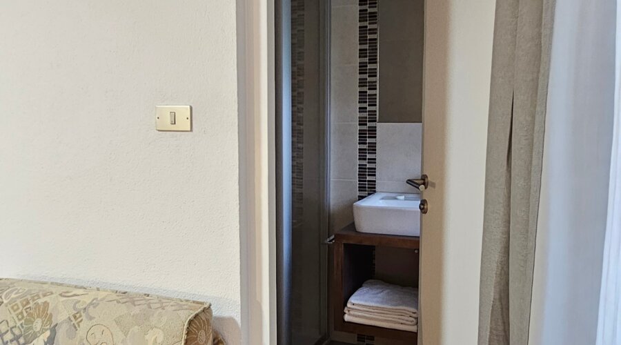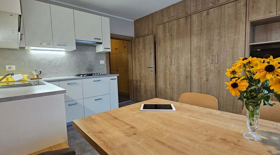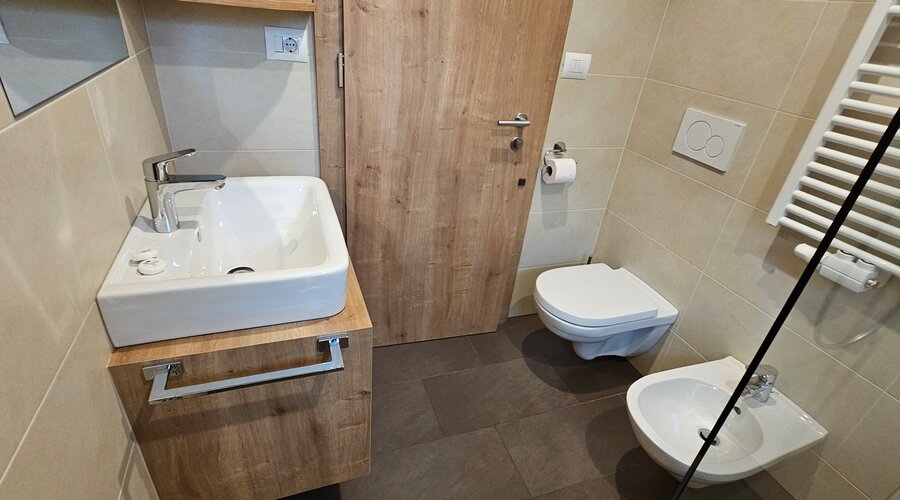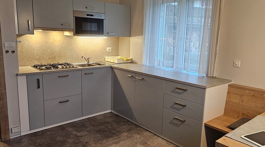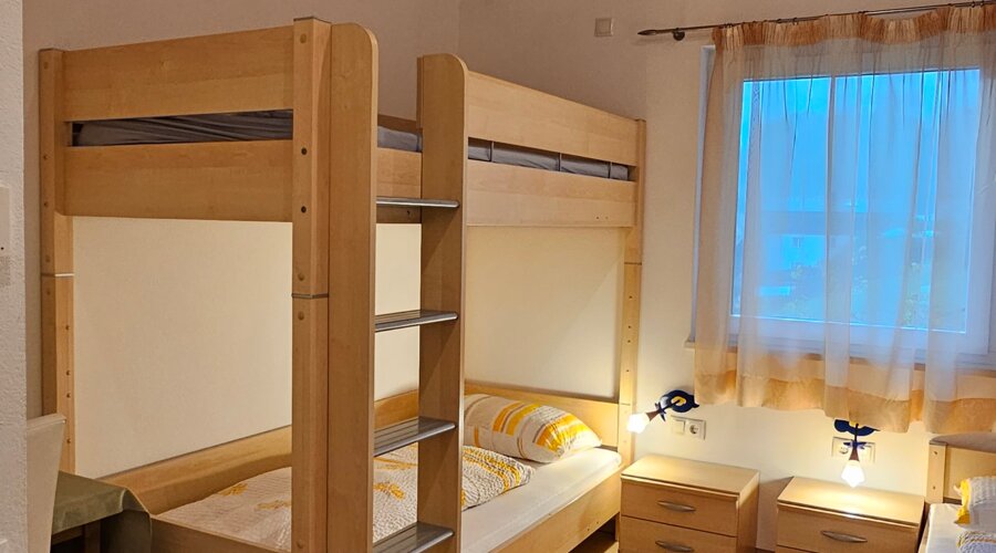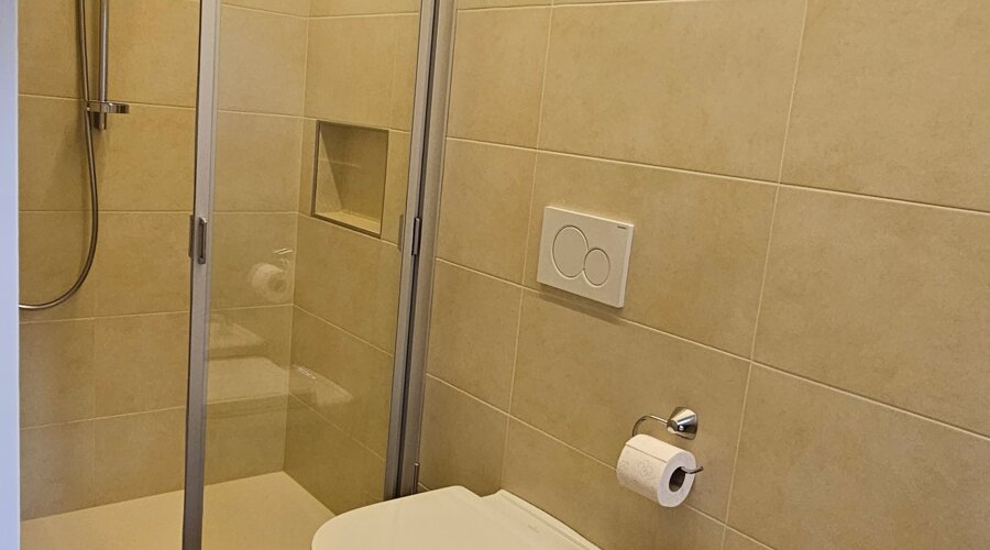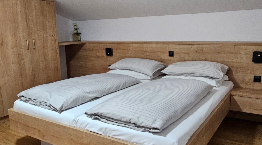 Die im 2. Stock gelegene Wohnung verbindet modernen Komfort mit natürlicher Leichtigkeit. Sie verfügt über ein liebevoll gestaltetes Schlafzimmer für erholsame Nächte, ein stilvolles Badezimmer mit Dusche, eine voll ausgestattete Küche sowie eine gemütliche Schlafcouch – ideal für entspannte Urlaubstage.