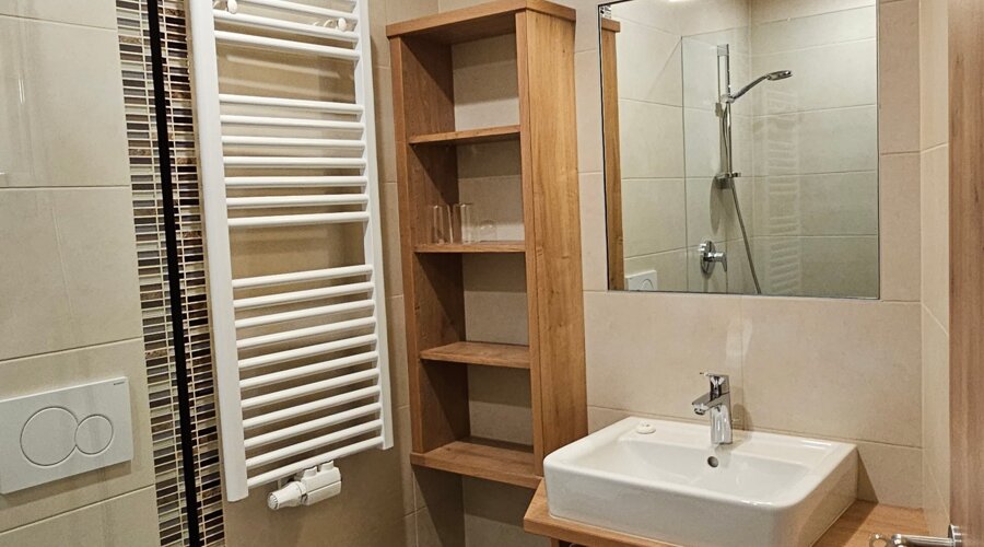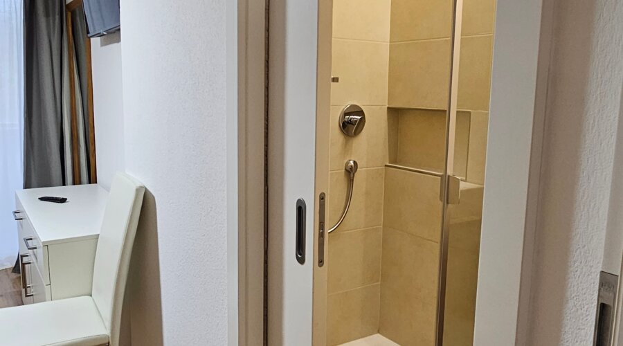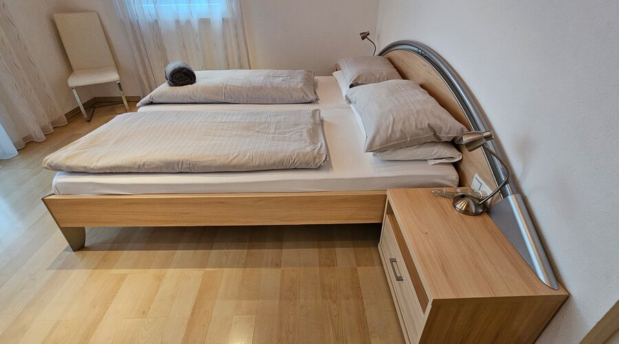 Unsere stilvolle Ferienwohnung im 2. Stock verbindet modernes Design mit entspannter Atmosphäre. Ein gemütliches Schlafzimmer, ein elegantes Bad mit Dusche, eine voll ausgestattete Küche und eine komfortable Schlafcouch sorgen für zeitgemäßen Wohnkomfort.