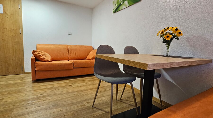 Das gemütliche Schlafzimmer lädt zu erholsamen Nächten ein, während das elegante Bad mit Dusche mit schlichter Modernität überzeugt. Die voll ausgestattete Küche bietet Raum für gemeinsame Kochmomente, und die komfortable Schlafcouch schafft zusätzlichen Platz zum Entspannen. Alles ist darauf ausgerichtet, Ihnen eine stilvolle und zugleich warme Umgebung zu bieten.
