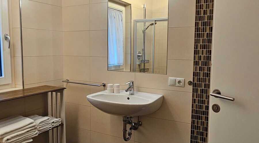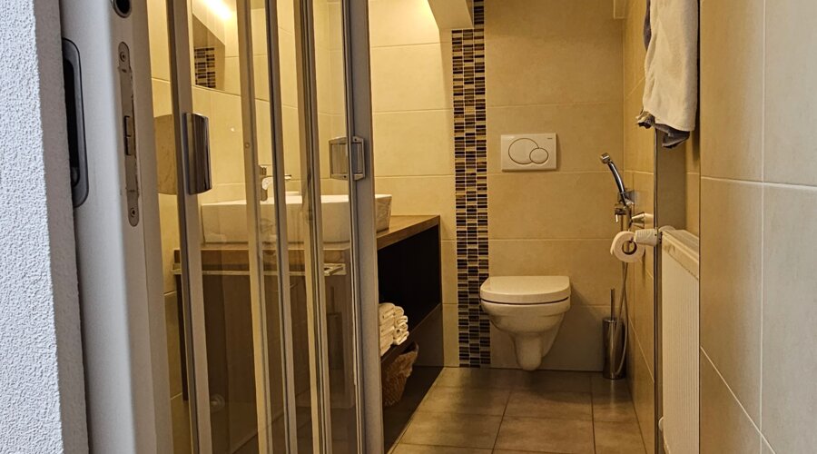 Il nostro elegante appartamento vacanze al 2° piano unisce design moderno e atmosfera rilassante. Una camera da letto accogliente, un bagno raffinato con doccia, una cucina completamente attrezzata e un comodo divano letto garantiscono un comfort abitativo contemporaneo.